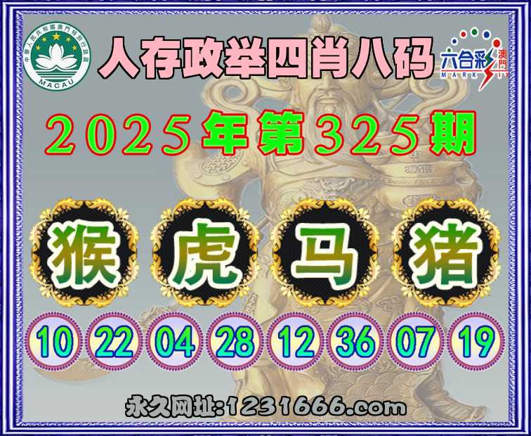 325期:【人存政举】 🩴四肖八码🩴【猴马猪】开:虎04准上榜高手
