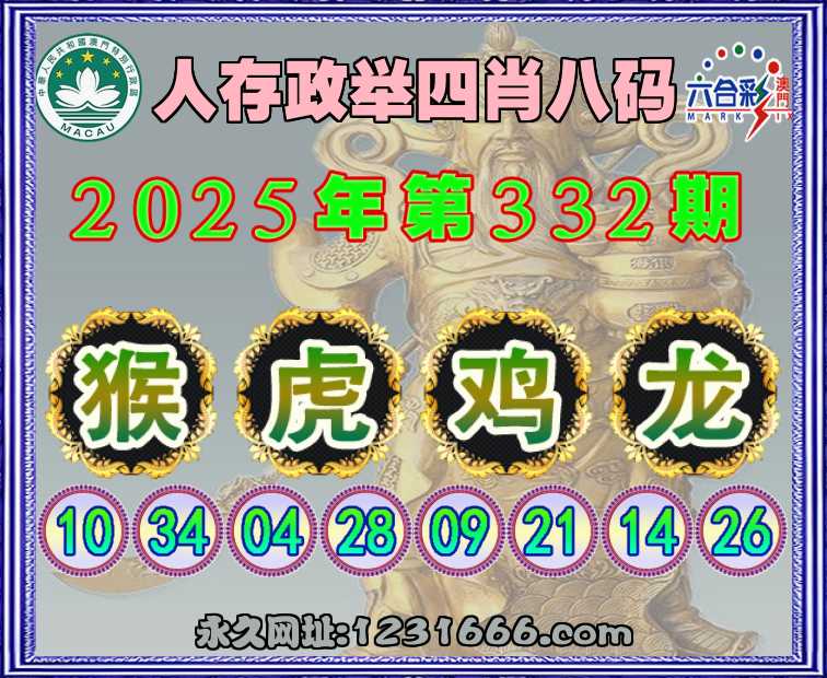 332期:【人存政举】 🩴四肖八码🩴【猴虎鸡】开:龙26准上榜高手
