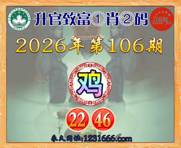 106期:〖升官致富〗 🎉①肖②码🎉【】【22.46】开:鸡22