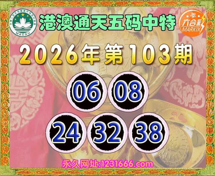 103期:『港澳通天』 🥬五码中特🥬【06.08.24.32.38】开:06