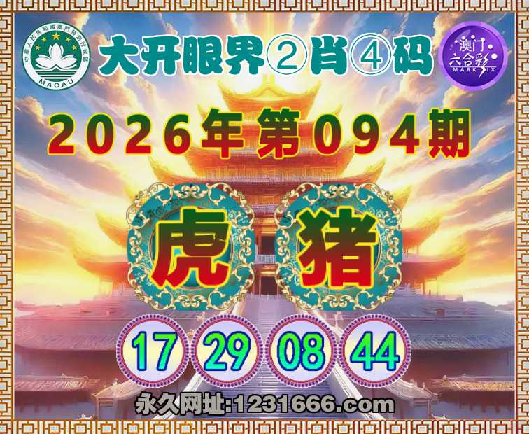 094期:『大开眼界』 🚣②肖④码🚣【猪】【17.29.08.44】开:虎17