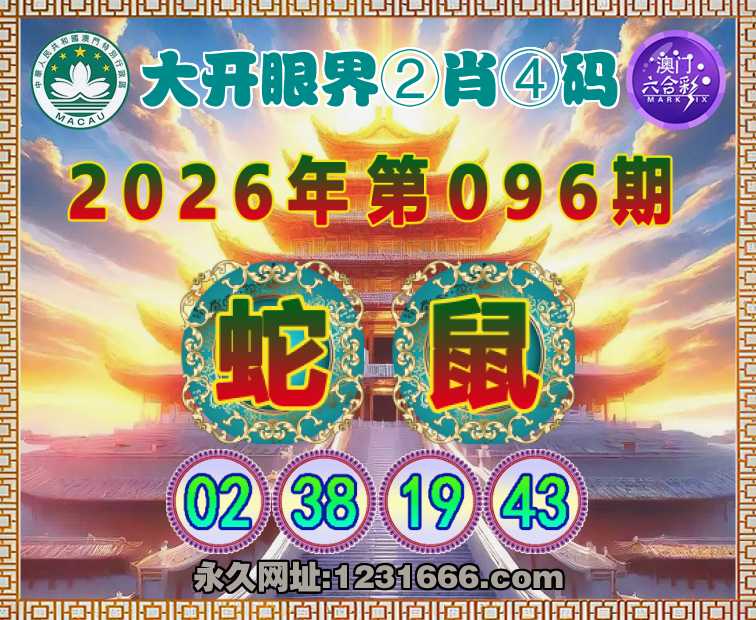 096期:『大开眼界』 🚣②肖④码🚣【蛇】【02.38.19.43】开:鼠43