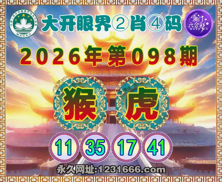 098期:『大开眼界』 🚣②肖④码🚣【猴】【11.35.17.41】开:虎17