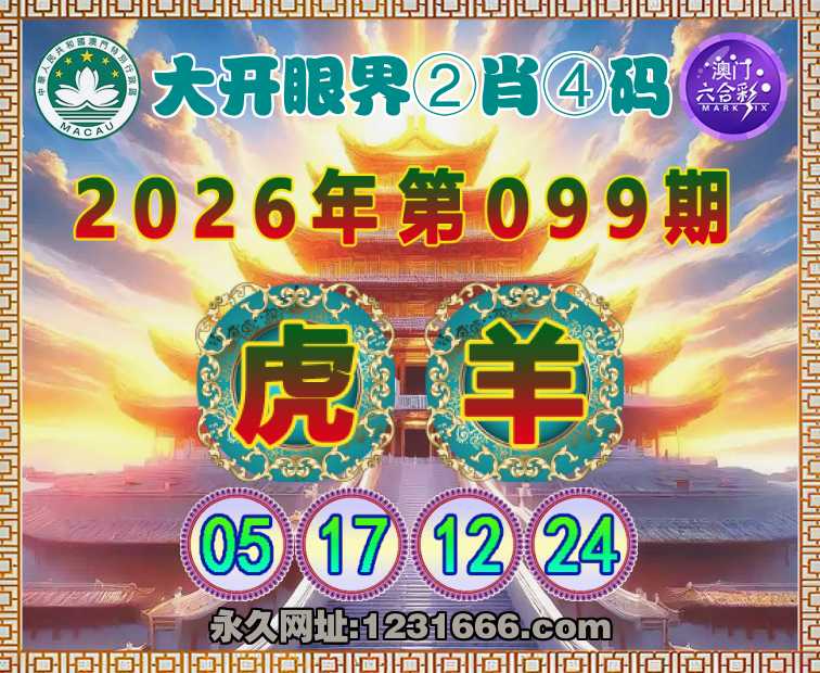099期:『大开眼界』 🚣②肖④码🚣【虎】【05.17.12.24】开:羊12