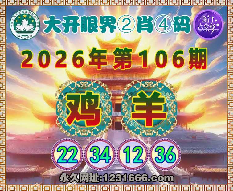 106期:『大开眼界』 🚣②肖④码🚣【羊】【22.34.12.36】开:鸡22